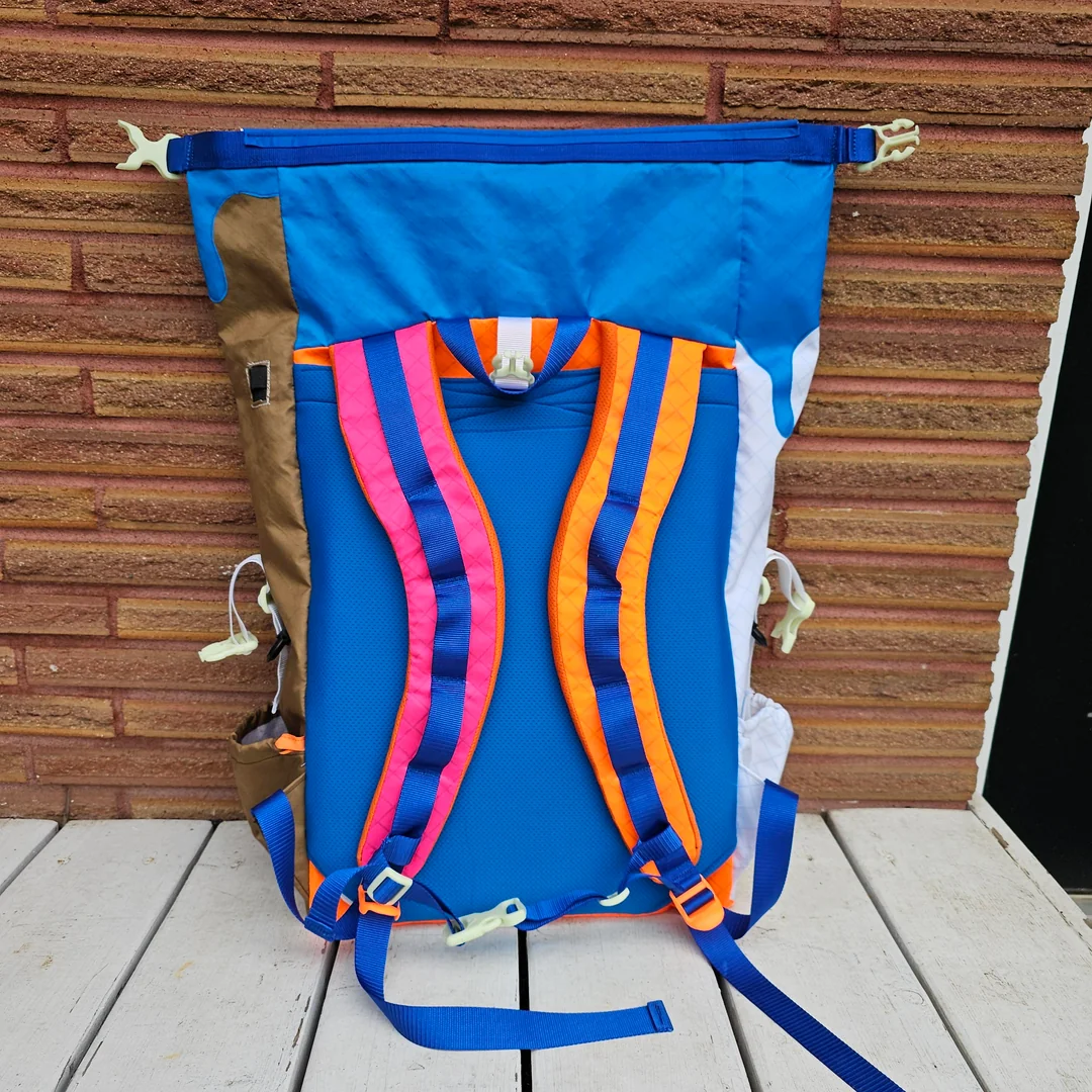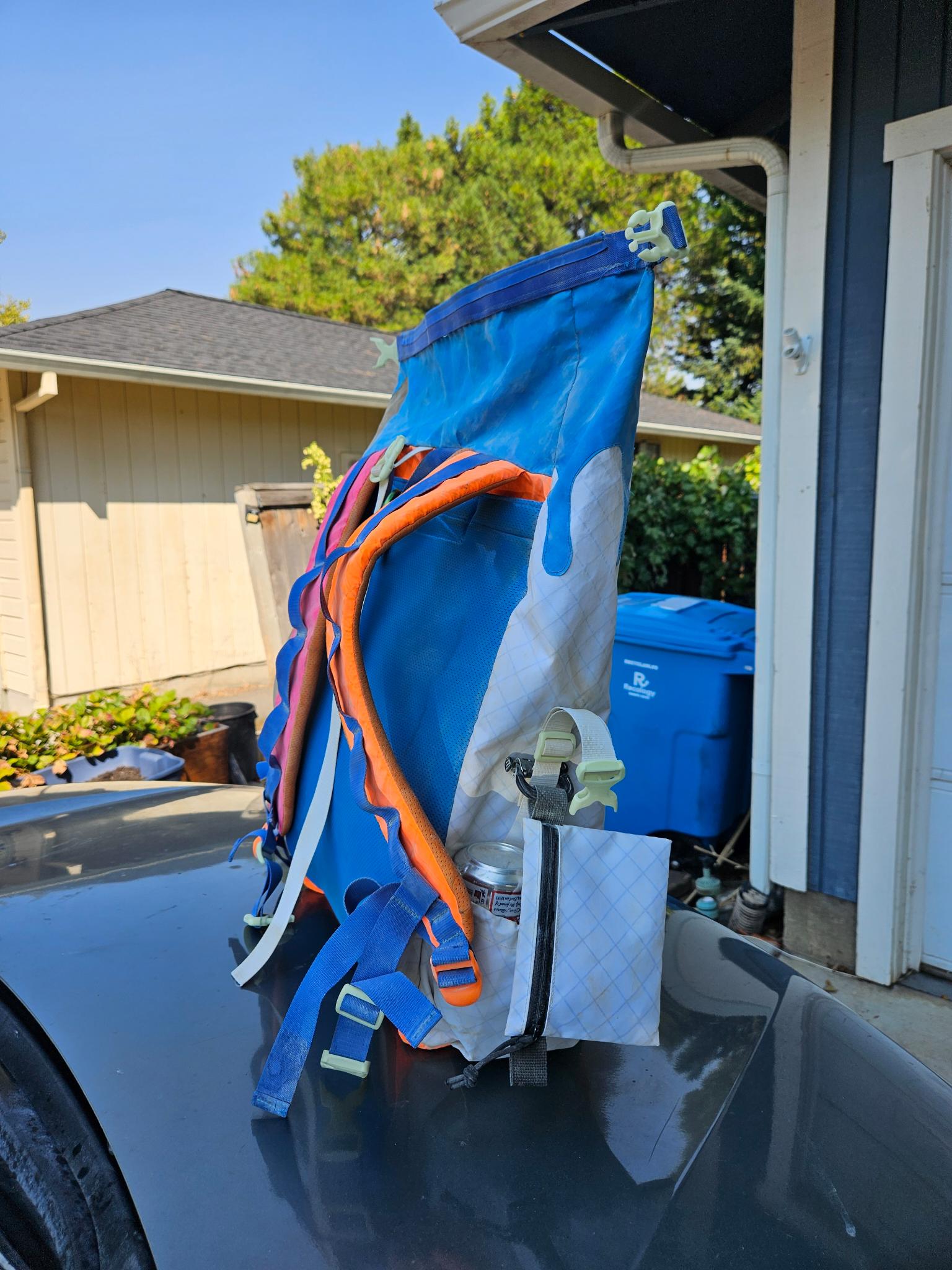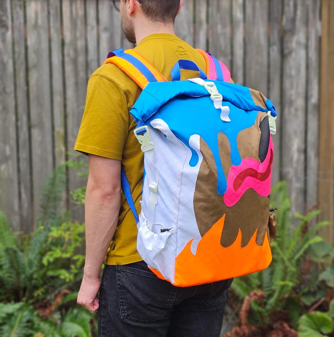 A friend needed a 35-liter backpack for Burning Man in two weeks. His pack was in the shop, and he wanted something "as crazy as possible" that could carry water while keeping desert dust out. Challenge accepted.