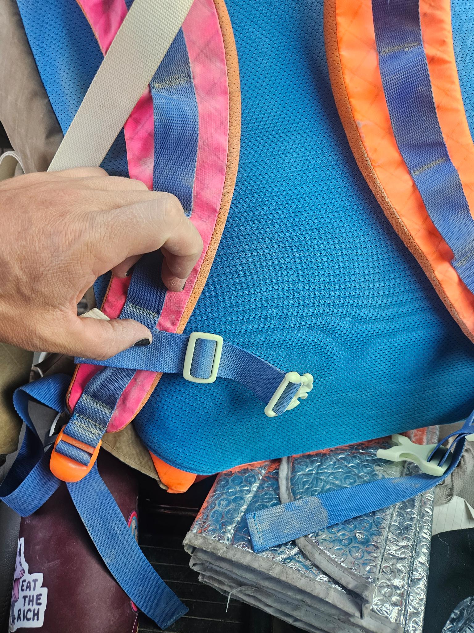 After a week in the desert facing massive dust storms, he sent back photos. Some stitches had come loose, the appliqué was peeling slightly, the side water bottle pockets were too small, and I might've installed the chest buckle backwards... Real feedback from real use.